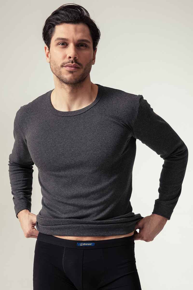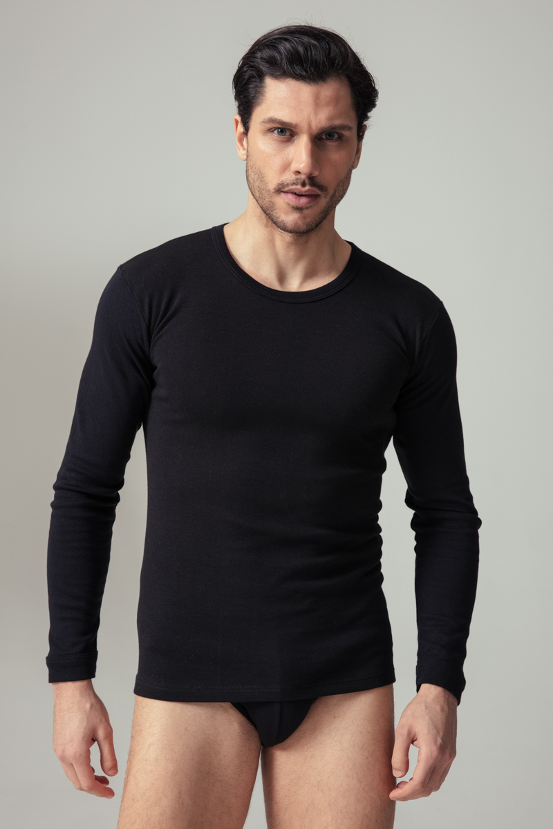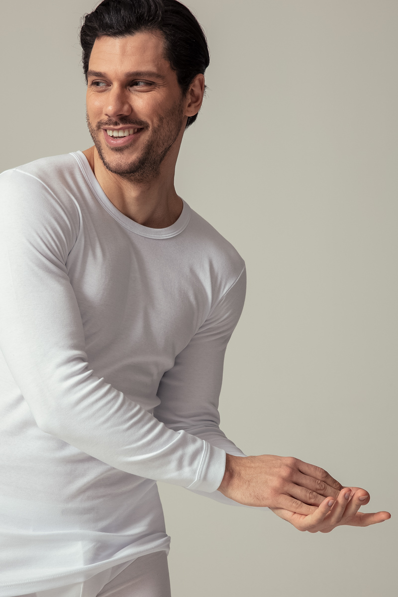 Maglia manica lunga girogola in cotone felpato 100% estremamente confortevole, traspirante e dalla vestibilità piuttosto aderente è il capo ideale da essere utilizzato in qualsiasi occasione sia come intimo che come capo esternabile.