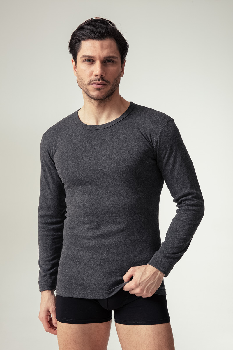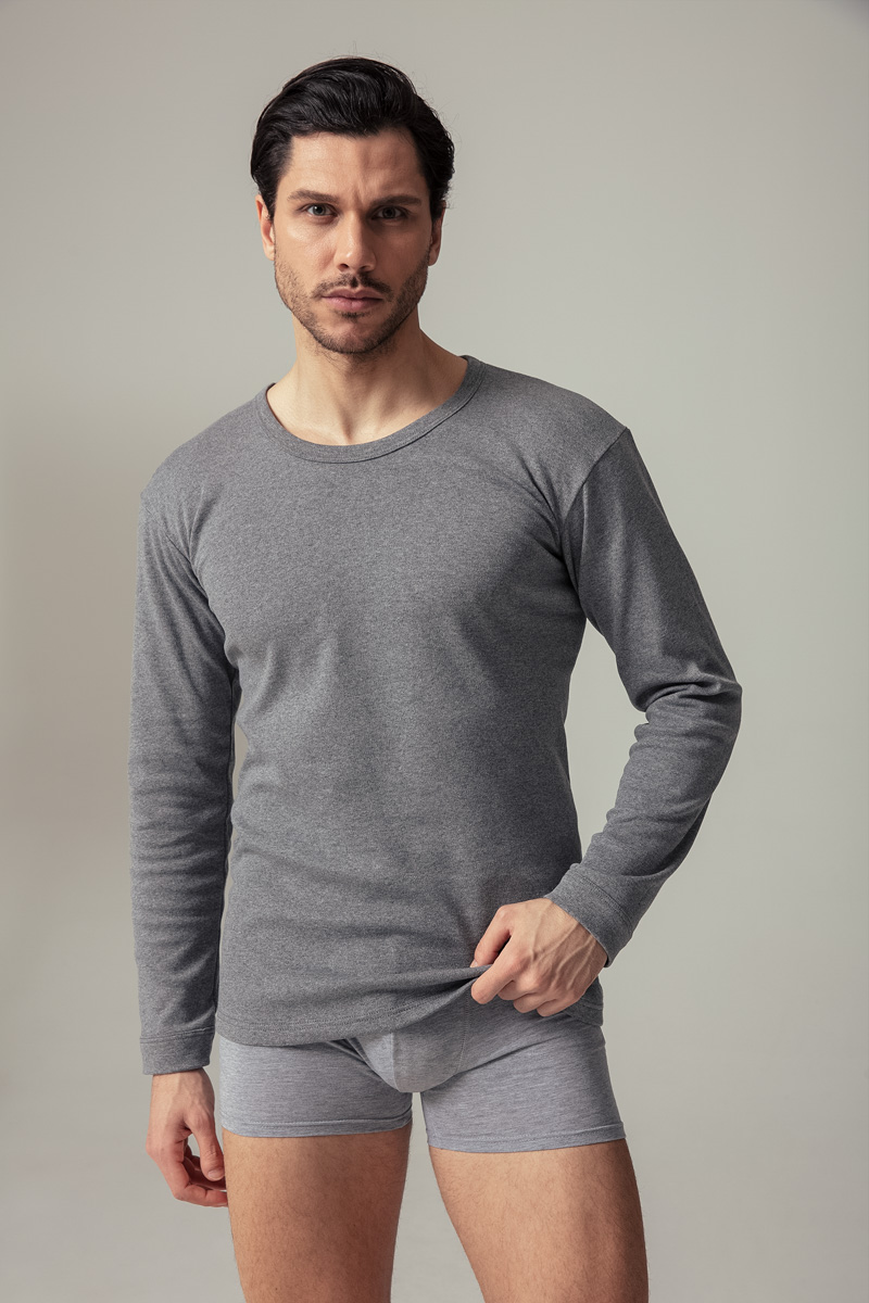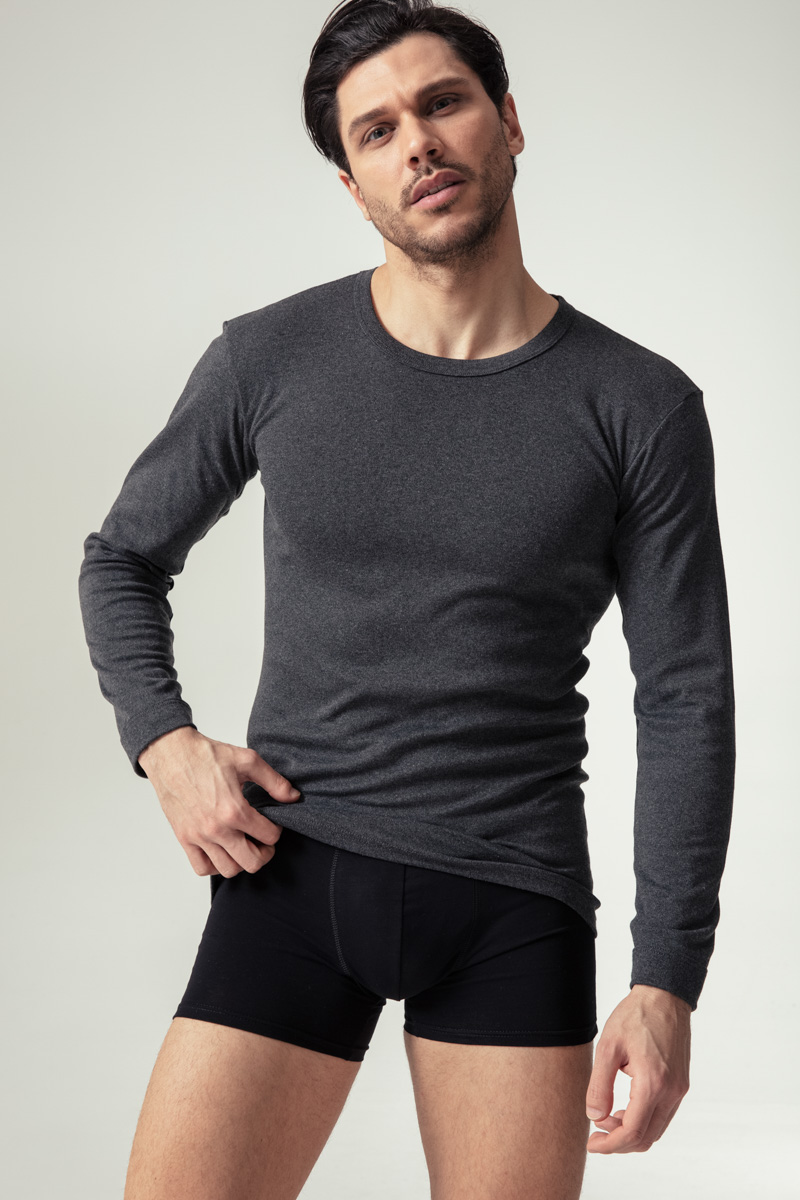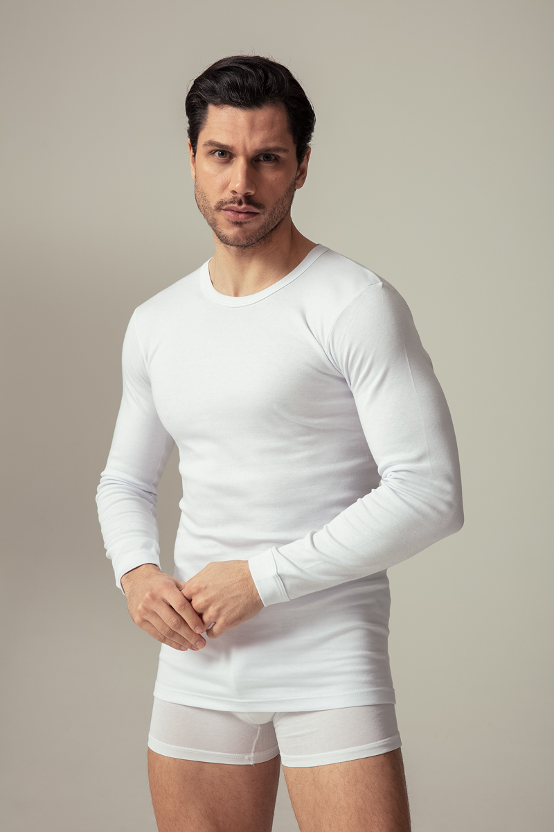 Maglia manica lunga girogola in cotone felpato 100% estremamente confortevole, traspirante e dalla vestibilità piuttosto aderente è il capo ideale da essere utilizzato in qualsiasi occasione sia come intimo che come capo esternabile.